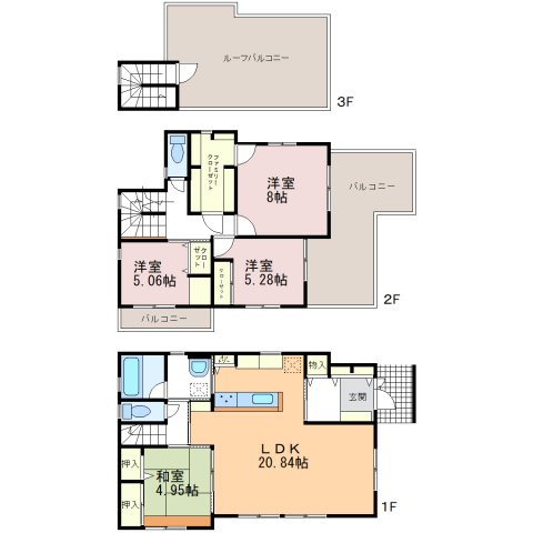 | 築年月 | 2016年9月築 | 間取り | 4LDK (LDK20.8/和室4.9/洋室8/洋室5.2/洋室5) | ||