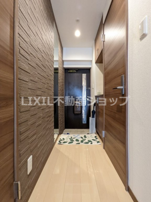 においが気になりやすい玄関にもエコカラットを設置。落ち着いた色合いの玄関です。
