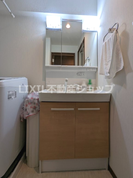 三面鏡の中は収納になっており洗面台もスッキリ◎