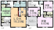 築年月 | 2025年8月築 | 間取り | 4LDK (LDK16.2/和室4.5/洋室8.6/洋室5.3/洋室5.2) | ||