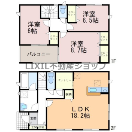 築年月 | 2025年11月築 | 間取り | 3LDK (LDK18.2/洋室8.7/洋室6.5/洋室6) | ||