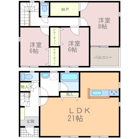 | 築年月 | 2022年12月築 | 間取り | 3SLDK (LDK21/洋室8/洋室6/S2.2) | ||