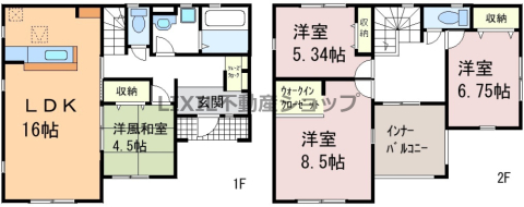 | 築年月 | 2025年9月築 | 間取り | 4LDK (LDK16/和室4.5/洋室8.5/洋室6.7/洋室5.3) | ||