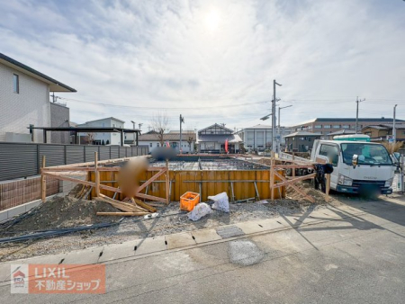 • 現地外観写真 建築中でも実物を体感できる『建物見学ツアー』への予約を随時受付しております。建築中の現地も含め、イメージしやすいように、プロである【宅建士】がわかりやすくご案内いたします!\当日見学可/