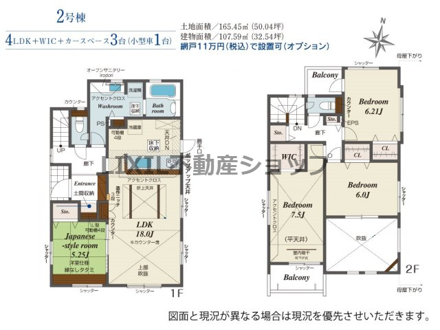 土地面積 | 165.45m² (50.05坪) | 建物面積 | 107.59u |
