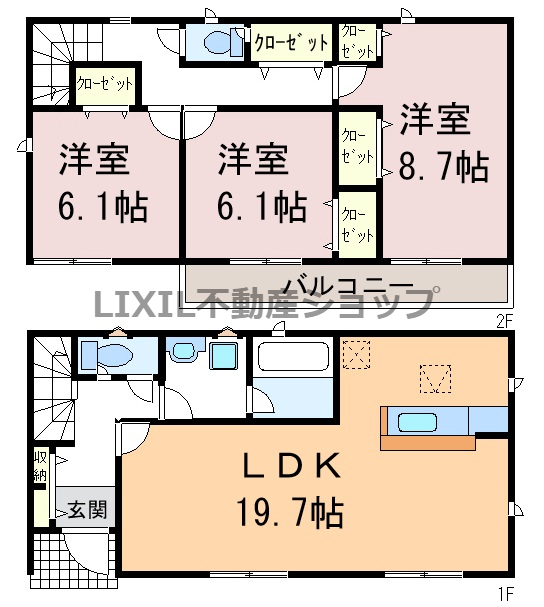 | 築年月 | 2026年3月築 | 間取り | 3LDK (LDK19.7/洋室8.7/洋室6.1/洋室6.1) | ||