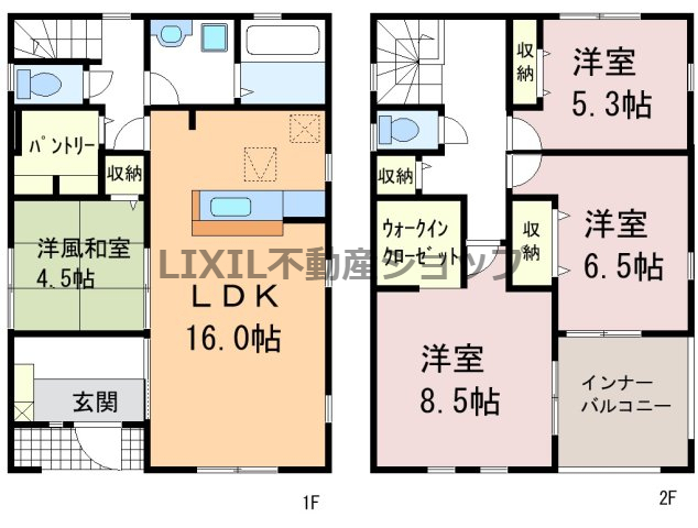| 築年月 | 2026年5月築 | 間取り | 4LDK (LDK16/和室4.5/洋室8.5/洋室6.5/洋室5.3) | ||