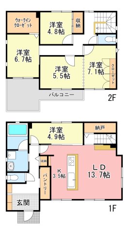 | 築年月 | 2016年8月築 | 間取り | 4LDK (LDK17.2/洋室4.9/洋室12.6/洋室6.7/洋室4.8) | ||