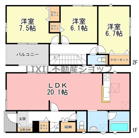 築年月 2026年5月築 間取り 3LDK (LDK20.1/洋室7.5/洋室6.7/洋室6.1)