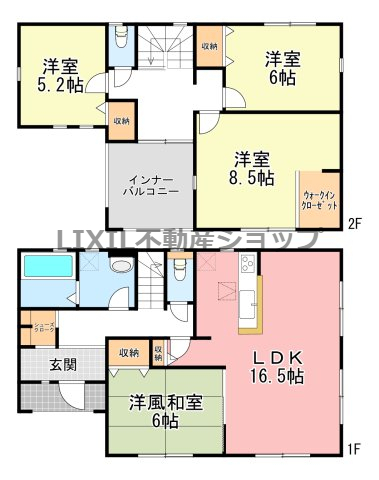 | 築年月 | 2026年7月築 | 間取り | 4LDK (LDK16.5/和室6/洋室8.5/洋室6/洋室5.2) | ||