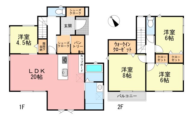 | 築年月 | 2026年4月築 | 間取り | 4LDK (LDK20/洋室4.5/洋室8/洋室6) | ||