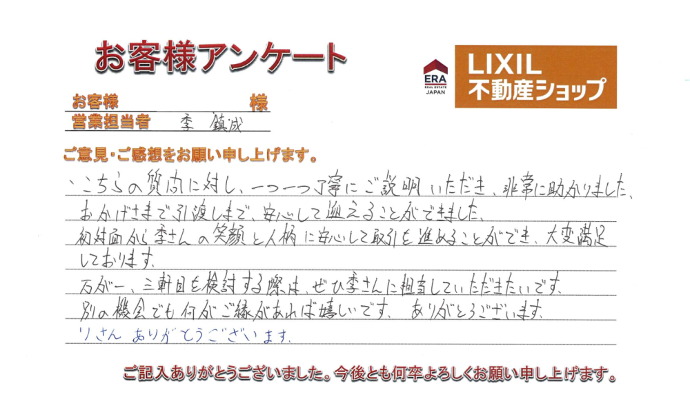 東店 李 2025/03/31李 鎭成が担当させて頂きました。 | 宇都宮の中古物件・中古住宅なら小金井不動産株式会社