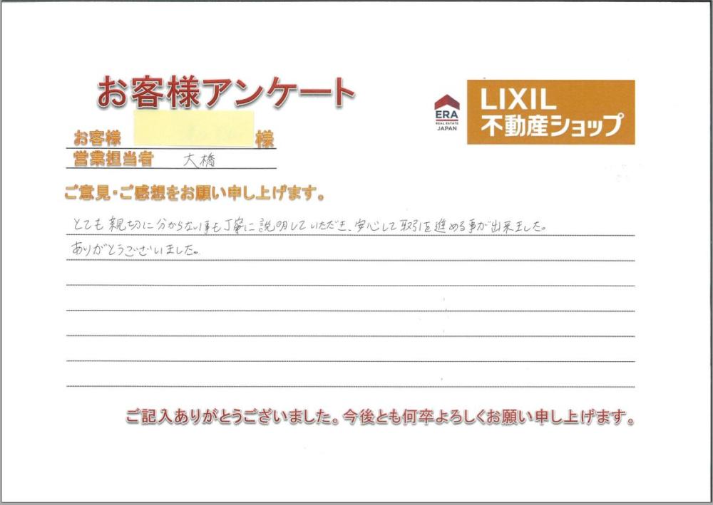 (担当者:大橋 儀史彦)「安心して進められた」というお言葉をいただき、ありがとうございます。