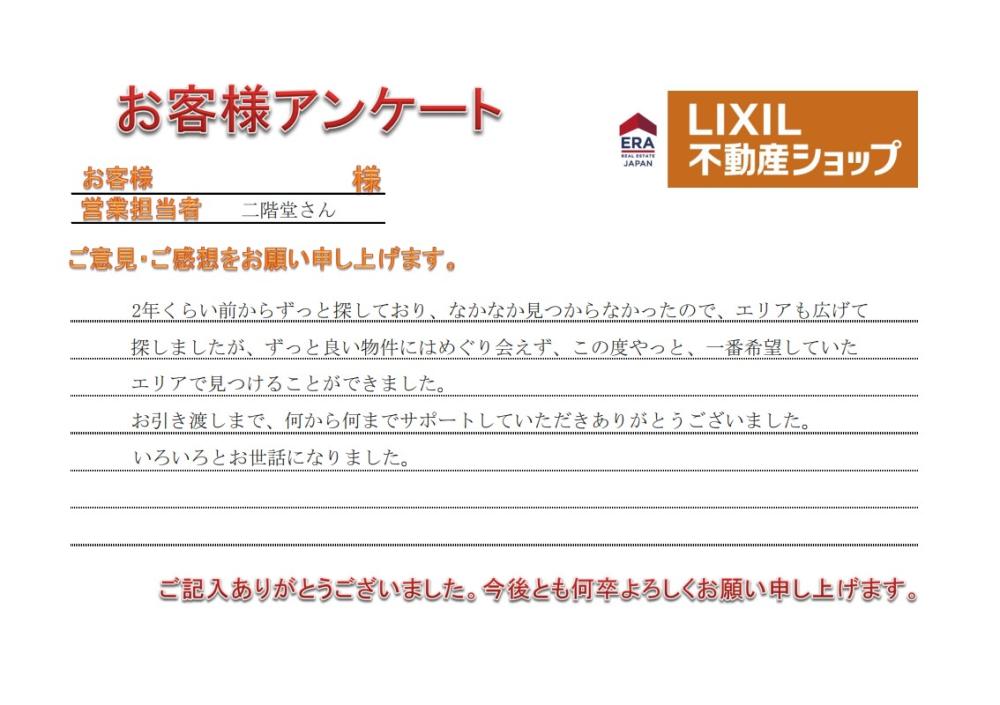 この度は、数ある不動産会社の中から小金井不動産をお選びいただき、誠にありがとうございました。